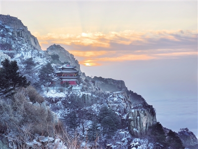 马年首场春雪为泰山披上银装。2月24日,雪后初霁,泰山之巅云雾翻涌,云海如万顷波涛漫过山峦,与皑皑白雪交相辉映,勾勒出一幅雄浑壮阔的水墨画卷。