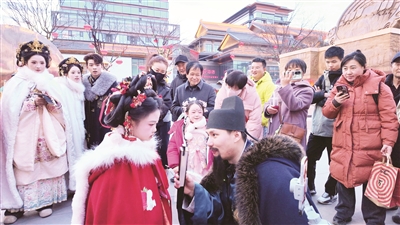 近日,一名7岁泰安女孩在西安大唐不夜城与景区NPC“长安杜甫”现场对诗的短视频在网上热传。视频中,女孩站在装扮成诗圣杜甫的演员面前毫不怯场、对答如流,引得现场游客纷纷驻足喝彩,其从容的表现也赢得众多网友点赞。这场对诗,让古都西安的街头多了一缕来自齐鲁大地的诗意。