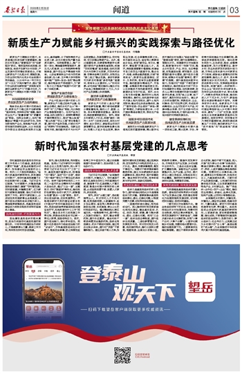 全面推进乡村振兴,关键在党、关键在人;建设农业强国,根基在农村、力量在基层。新时代农村基层党建使命光荣、责任重大。各级党组织必须坚持大抓基层的鲜明导向,以更高标准、更实举措破解难题、强化成效,不断增强农村基层党组织的政治领导力、思想引领力、群众组织力、社会号召力,让其真正成为乡村振兴的“主心骨”、基层治理的“领头雁”,为全面推进中华民族伟大复兴筑牢农村基层根基。
