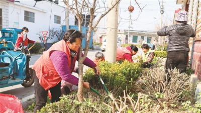 本报3月10日讯(记者 冯子凝)连日来,岱岳区夏张镇张家庄村组织志愿者开展绿化苗木修剪活动,通过精细化养护提升村庄颜值。