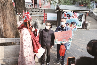 “泰山的主峰叫什么?”“泰山必打卡的石刻是什么?”“杜甫写泰山的诗叫什么?”……活动现场,妙趣横生的泰山诗词趣味问答,引得游客踊跃参与,也让他们感受到了泰山的热情与祝福。与此同时,泰山景区还贴心地为游客随机派发了限量红门靠山苑商户优惠券,让游客在尽享登山乐趣之余,体验到便捷与实惠的消费福利。
