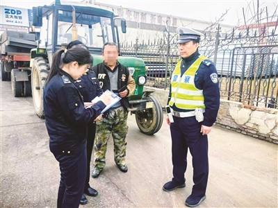 本报3月16日讯(记者 张智凯)为进一步规范拖拉机登记管理,强化农机安全监管,及时排查整治拖拉机安全隐患,近日,泰安交警岱西大队满庄中队联合岱岳区农机局,在满庄钢材大市场开展拖拉机登记专项检查行动。