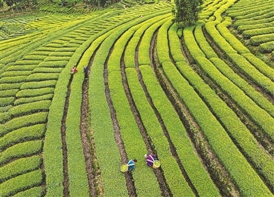 3月15日,在四川省乐山市沐川县利店镇,茶农在茶园采摘春茶。近日,各地茶树春芽萌发,茶农忙着采摘今年的头春茶供应市场。 新华社发