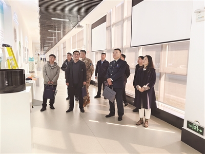 在泰山玻璃纤维有限公司,考察组一行实地查看了企业产品展示走廊,听取了企业关于发展历程、主营业务、技术研发等方面的情况介绍,重点围绕企业技术创新、应用场景等相关问题进行了深入了解,并就国防动员相关政策进行了宣传和解读。