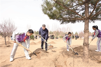 挥锹铲土、培土围堰、提水浇灌……习近平接连种下油松、北京牡丹、榆叶梅、杜仲、元宝枫等多棵树苗。他一边植树,一边询问孩子们的学习生活、劳动锻炼和参加植树情况。习近平强调,青少年像小树苗一样充满活力和希望,要从小树立远大志向,爱知识、爱劳动、爱自然,德智体美劳全面发展,