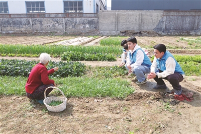 座谈刚结束,服务队队员就跟着村干部扎进了田间地头。他们用脚步丈量土地,实地核查耕地连片程度,仔细查看灌溉沟渠和田间道路条件。队员蹲下身,与正在劳作的村民拉起家常,把春季病虫害防治的难点、田间管理的经验一条条记下。