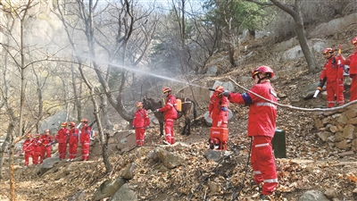 为进一步优化网格化防控机制,近日,泰山景区桃花源管理区在辖区葛条沟组织开展森林防火应急演练。
