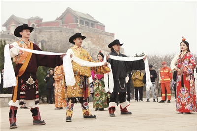 3月31日下午,泰山之巅还迎来了一群来自雪域高原的客人。受邀参与赛事文化交流的玉树州民族歌舞团演员身着绚丽精美的藏族服饰,在山顶载歌载舞,开展“雪域欢歌汇东岳,礼乐雅集颂山河”文化交流活动。高亢悠扬的歌声、灵动欢快的舞步,与泰山的巍峨气势相映成趣。演员沉浸在这场跨越山海的文化相遇中,虽然登山过程有些辛苦,但登顶后眼前的壮阔景色让大家直呼震撼,脸上都洋溢着开心与满足,纷纷感叹此行难忘。