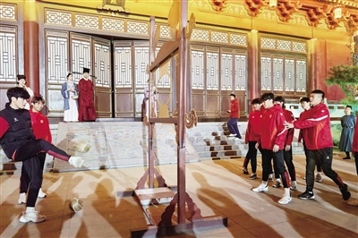 此外,永州队走进东平博物馆与大宋不夜城。队员们换上飘逸古装,摇身一变成了宋代文人雅士,穿梭在古色古香的街巷中,和NPC趣味互动、轻松打卡,在灯火璀璨间沉浸式体验宋韵风情。大家一路欢声笑语,时不时停下拍照留念,把千年宋韵的美好瞬间一一收藏。赣州队也奔赴大宋不夜城开启了一场趣味满满的宋韵文化之旅,队员们兴致盎然地观看《燕青打擂》《千里江山》等实景演出,在水浒豪情与青绿宋韵中流连忘返;走进名人堂参与《端王戏俅》情景剧互动,和NPC轻松玩闹,沉浸式感受大宋市井烟火。最让大家觉得新鲜有趣的,莫过于体验宋代蹴鞠,队员们轮番上阵、嬉笑打闹,在轻松欢乐的氛围里感受古代体育的魅力。队长卢欣表示,这次泰安之行处处充满惊喜,古朴雅致的景致、精彩好看的演出,再加上贴心周到的服务,让大家玩得特别开心,留下了十分美好的回忆。