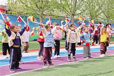 ■五胞胎参加幼儿园集体活动。记者 陈阳 摄