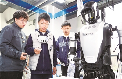 4月9日,学生在石景山人形机器人数据训练中心参观机器人数据训练。 近期,一些北京市中小学生来到石景山人形机器人数据训练中心开展研学活动。学生们在这里详细了解机器人的发展历程、分类以及在日常生活中的应用,并参加操控机器人等活动,近距离接触前沿科技,感受具身智能科技的魅力。 新华社发